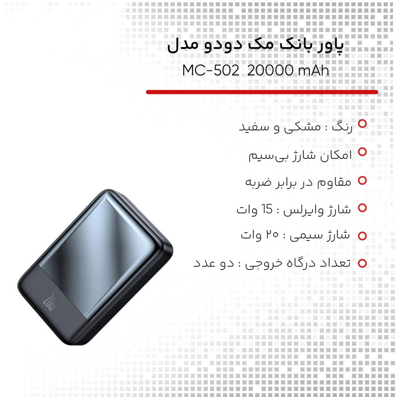 پاوربانک مک دودو مدل MC-502 ظرفیت 20000mAh